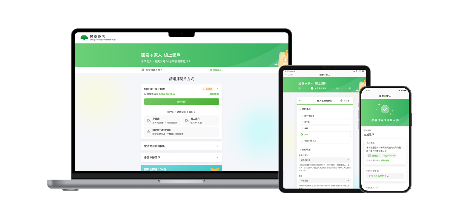 協助改版國泰投信開戶改版,以提升開戶體驗並解決流程複雜之痛點